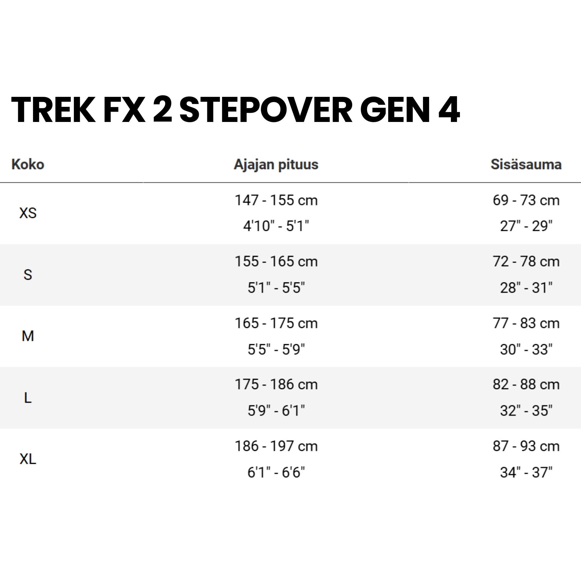 - Tuotepolku Etusivu PolkupyörätHybridi & KaupunkipyörätHybridipyörät Trek FX 2 Stepover Gen 4