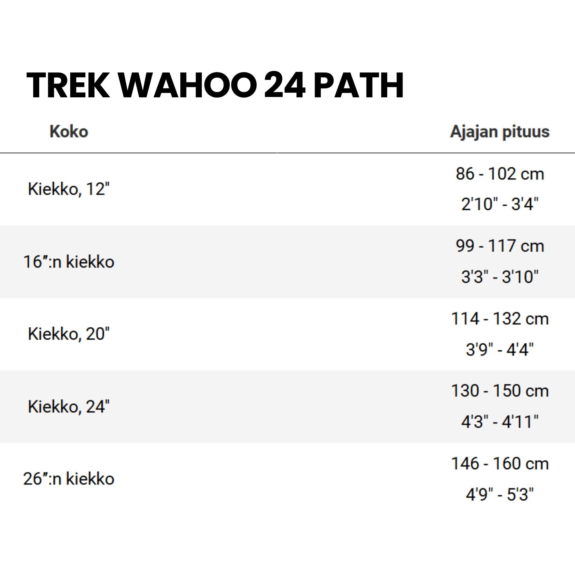 - Tuotepolku Etusivu PolkupyörätNuortenpyörät & LastenpyörätNuortenpyörät Trek Wahoo 24 Path